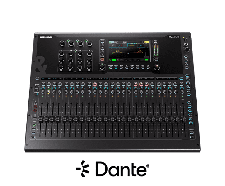 The Qu-6D provides a 16×16 Dante interface at 96kHz or 48kHz for integration into larger systems or installs.