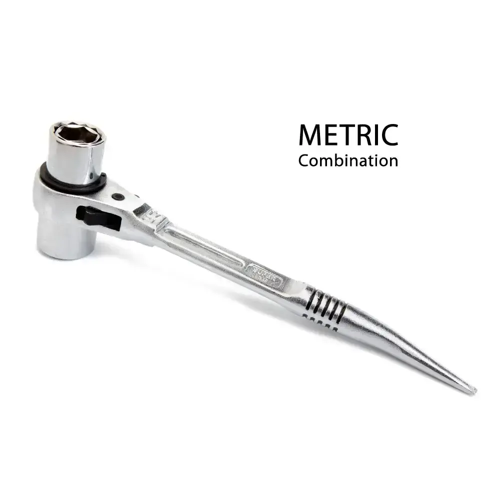 4 socket sizes including 17, 19, 21 and 24 mm all constructed from solid steel and coated in an ultra-tough nickle chrome plating. Compatible with Dirty Rigger® tool/podger lanyard.