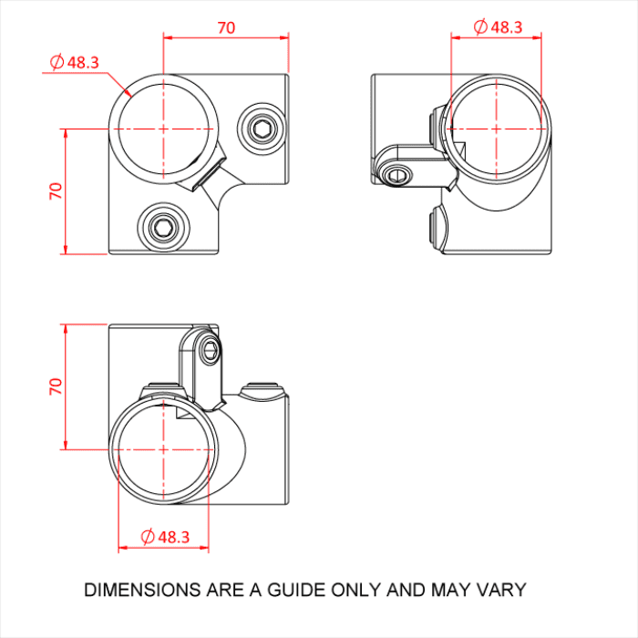 Pipeclamp 3 Way Elbow 90°