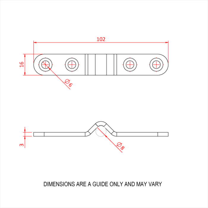 A mild steel fitting with a BZP finish, generally used to hold scenery lines in position.